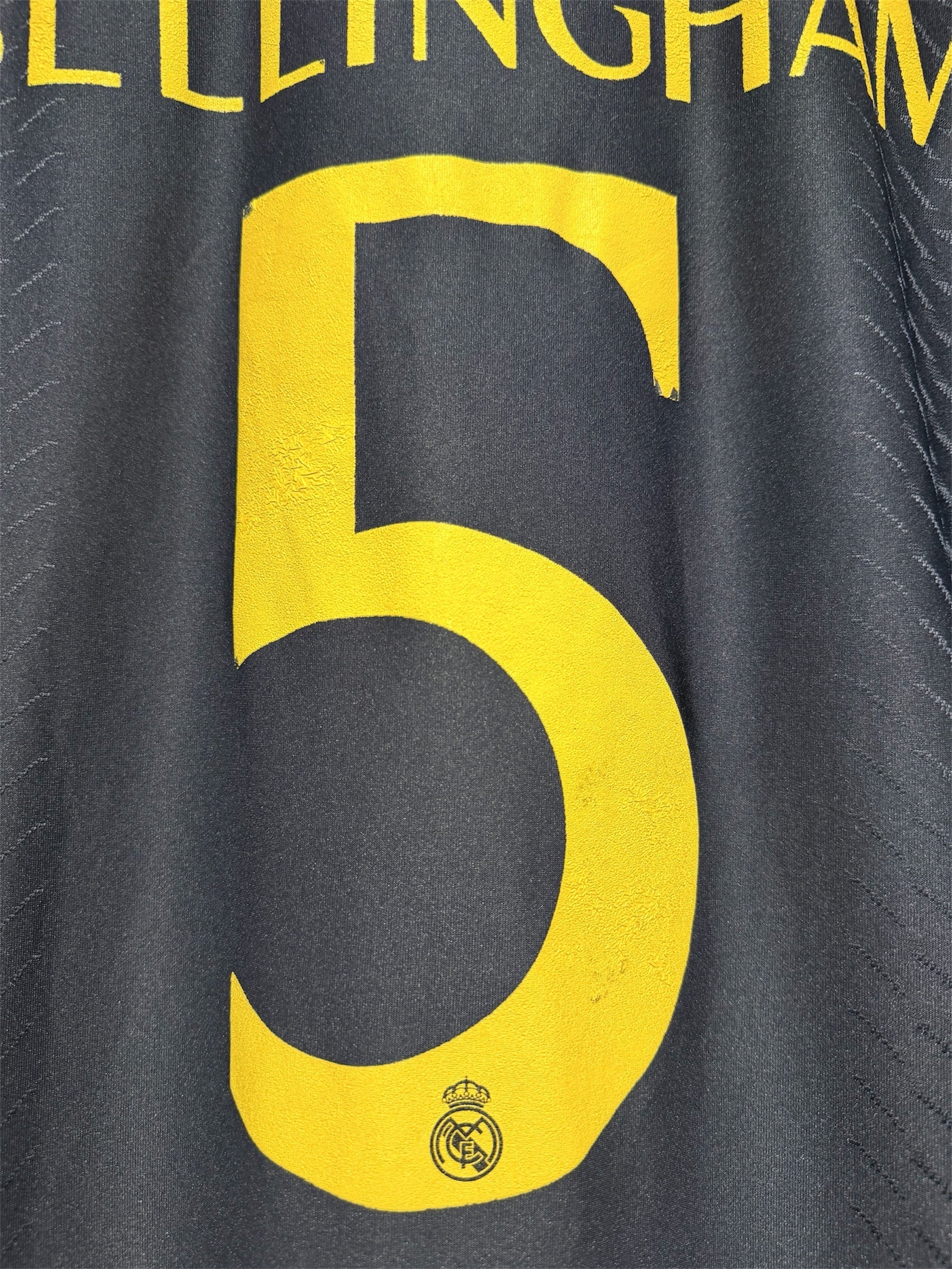 Original udebanetrøje i Player Version fra Real Madrids 2023/24-sæson med Jude Bellingham tryk. Denne autentiske vintage fodboldtrøje er fra Bellinghams første sæson i Real Madrid.